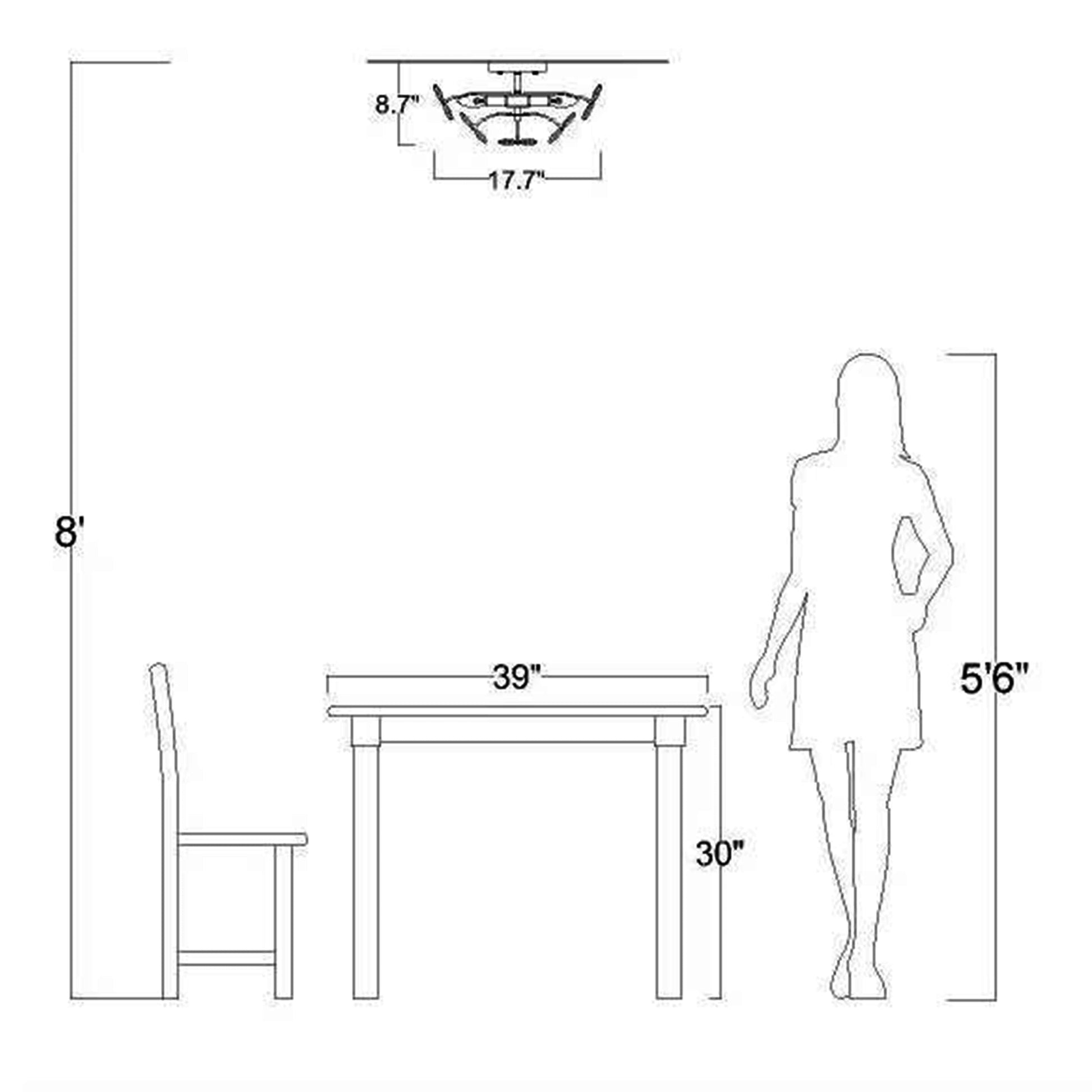 - Luminaire : 17,7 pouces de diamètre x 8,7 pouces de hauteur ; Plaque de plafond : 5,9 pouces de diamètre x 1 pouce de hauteur.