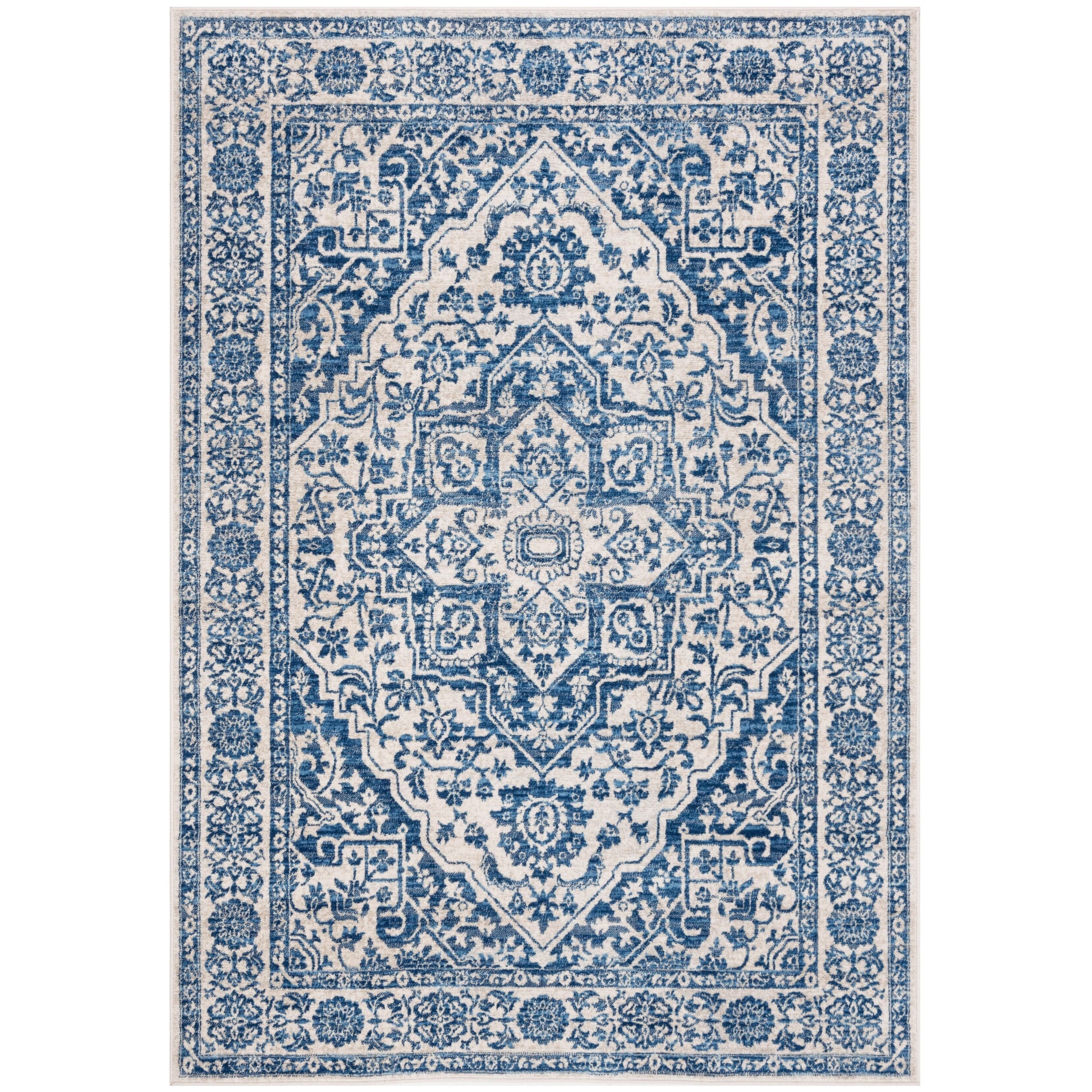 Découvrez notre somptueux tapis traditionnel ivoire et marine, un chef-d'œuvre d'artisanat et d'élégance qui sublimera n'importe quelle pièce de votre maison. Tissé mécaniquement en Turquie, ce grand tapis rectangulaire de 305 x 405 cm (10' x 13') offre une luxueuse épaisseur de velours de 1 cm (3/8"), alliant confort et durabilité. Composé d'un mélange harmonieux de 60 % de polypropylène et de 40 % de jute, ce tapis combine le meilleur des deux mondes : la résistance et la facilité d'entretien des fibres synthétiques, alliées à la robustesse naturelle et au caractère écologique du jute. Le style traditionnel de ce tapis se révèle dans ses motifs complexes, mêlant des motifs classiques à une palette de couleurs intemporelle ivoire et marine, créant une atmosphère de grandeur et d'authenticité. Le délicat motif de médaillon, entouré de détails floraux ornementaux et d'une élégante bordure, apporte sophistication et profondeur au design. Chaque centimètre de ce tapis exhale le charme et l'élégance des motifs classiques, tout en s'harmonisant parfaitement avec les intérieurs modernes. Ses techniques de décoloration et de vieillissement subtiles lui confèrent un aspect intemporel, idéal pour les décors contemporains et traditionnels. Fabriqué avec fierté en Turquie, ce tapis témoigne d'un savoir-faire exceptionnel et répond aux normes strictes de la certification OEKO-TEX, garantissant l'absence de substances nocives. Son tissage mécanique assure précision et régularité dans chaque fil. Placez cette pièce intemporelle dans votre salon, votre salle à manger ou votre chambre.