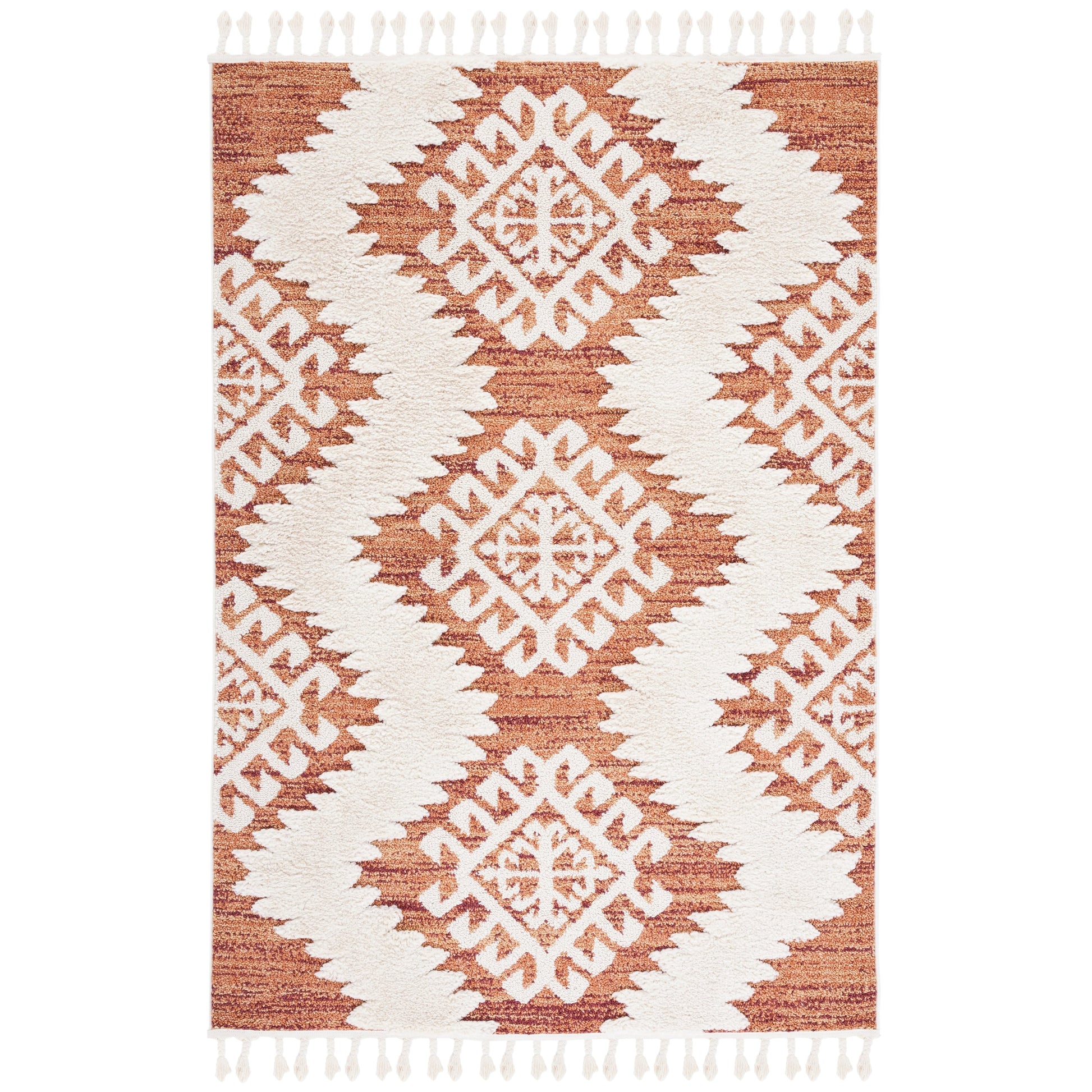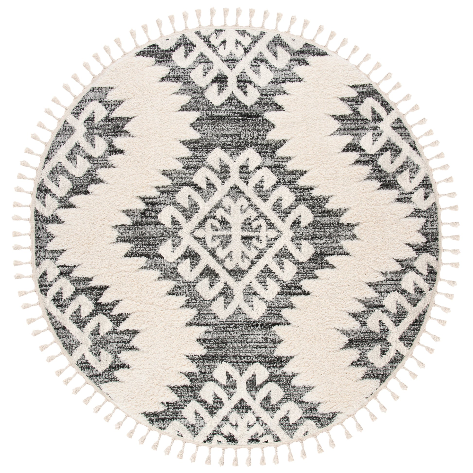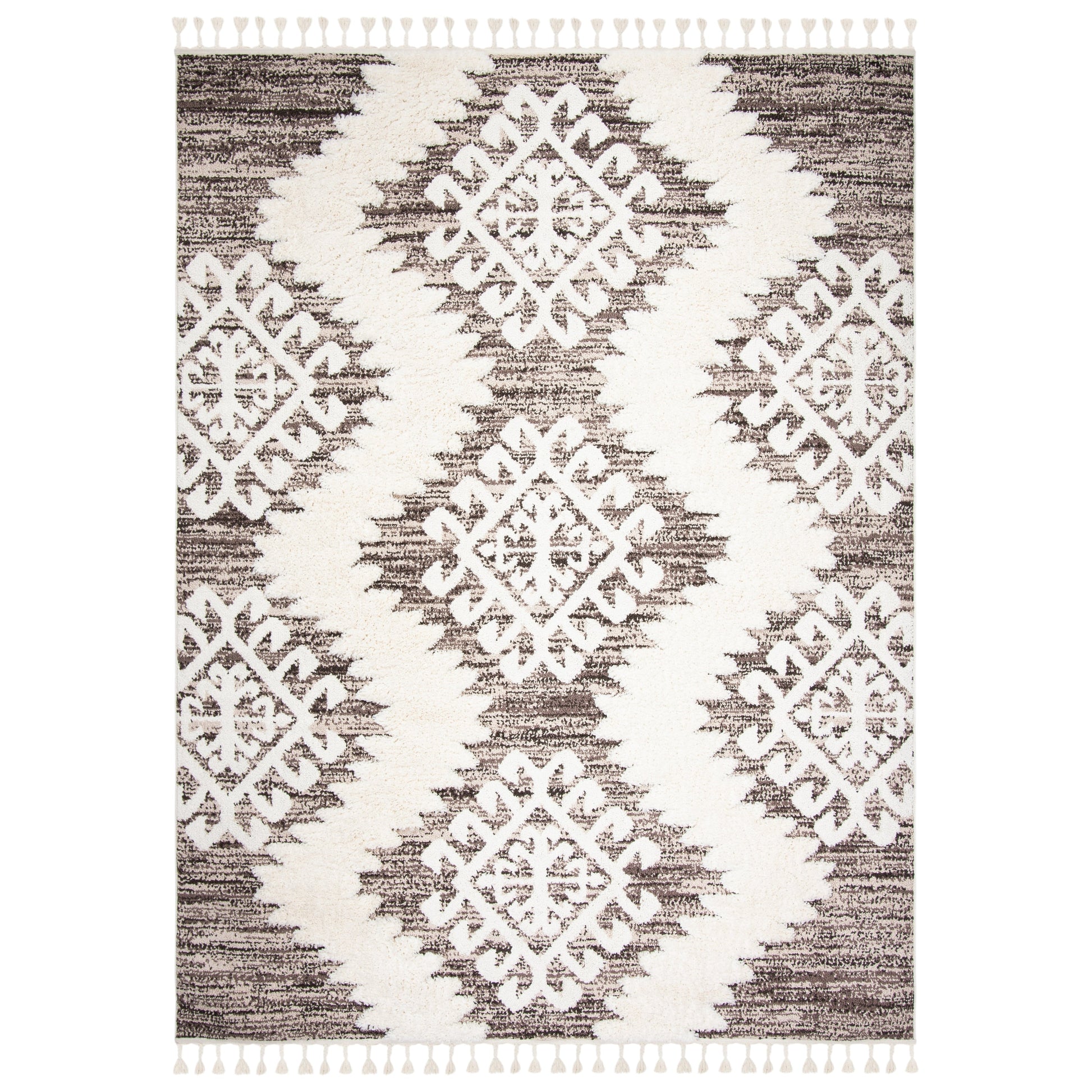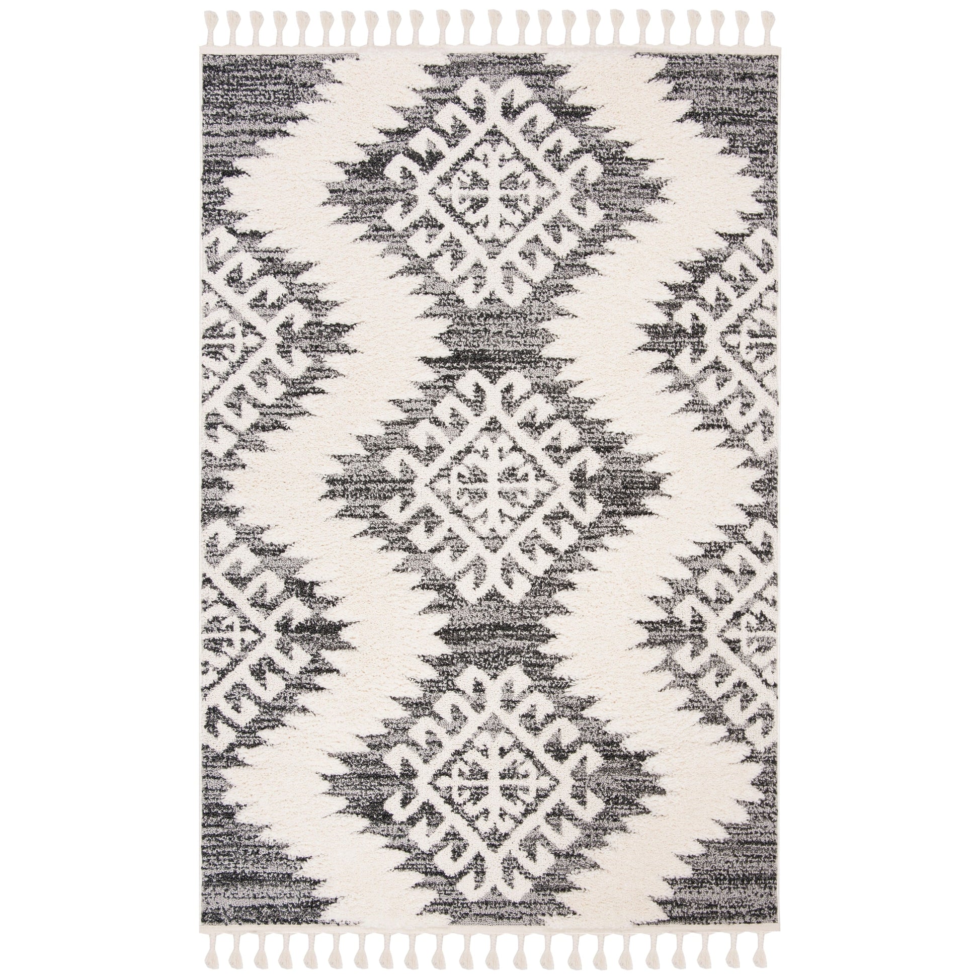 Le tapis SAFAVIEH Moroccan Tassel Shag Iulieana Boho Tribal allie confort et style à la perfection. Son motif marocain classique en losanges et ses motifs abstraits aux couleurs neutres apportent une touche contemporaine à votre intérieur. Grâce à ses fibres synthétiques qui ne peluchent pratiquement pas, vous profiterez d'un confort optimal et d'une douceur moelleuse sous vos pieds, avec une épaisseur de 5 cm. Facile d'entretien et résistant, ce tapis est idéal pour toutes les pièces de la maison.