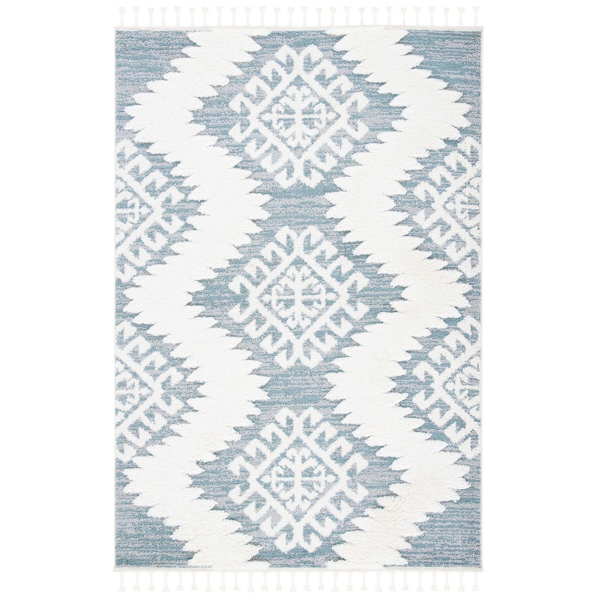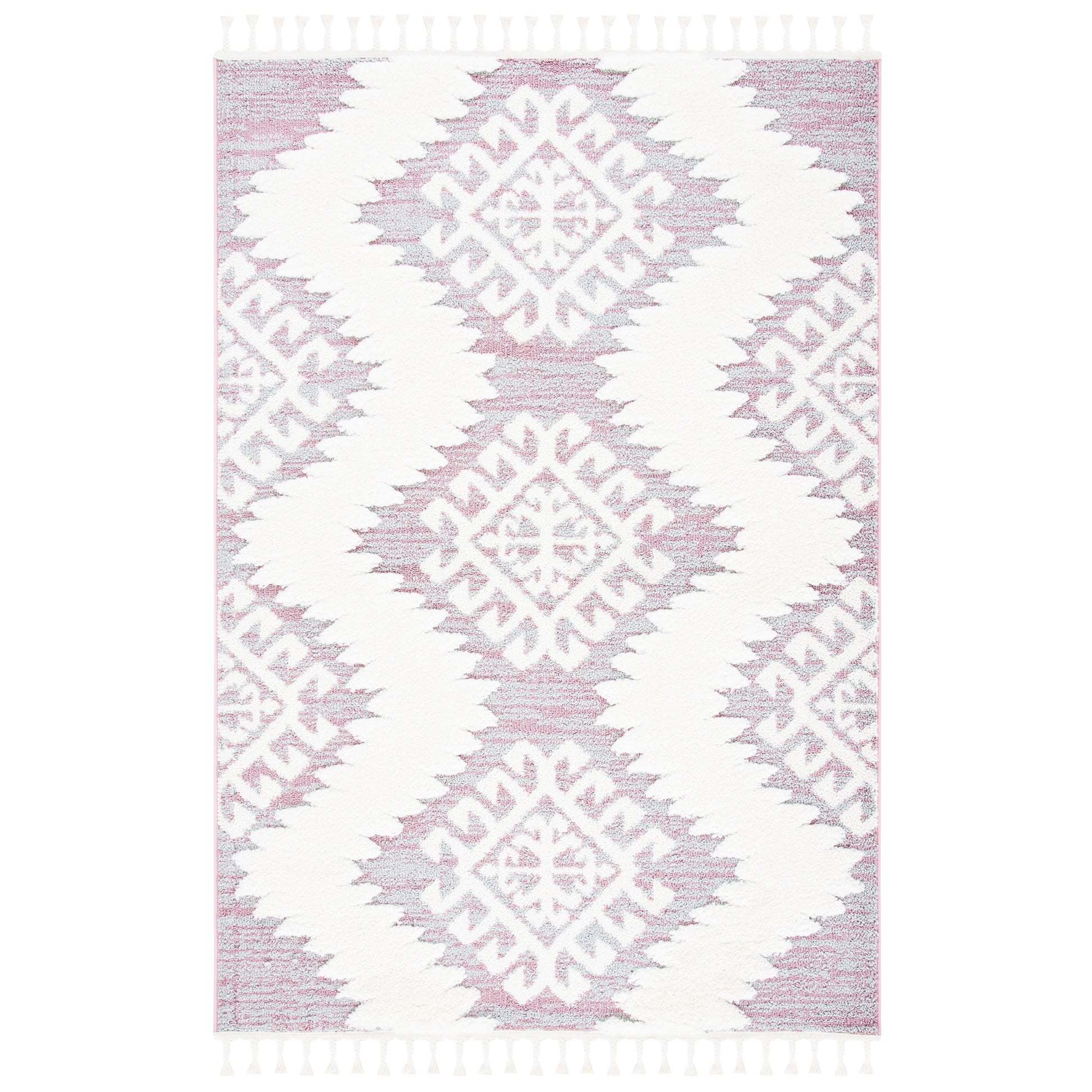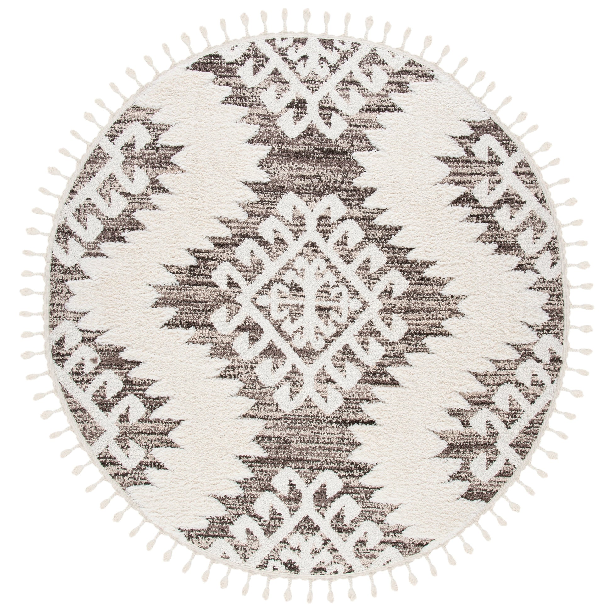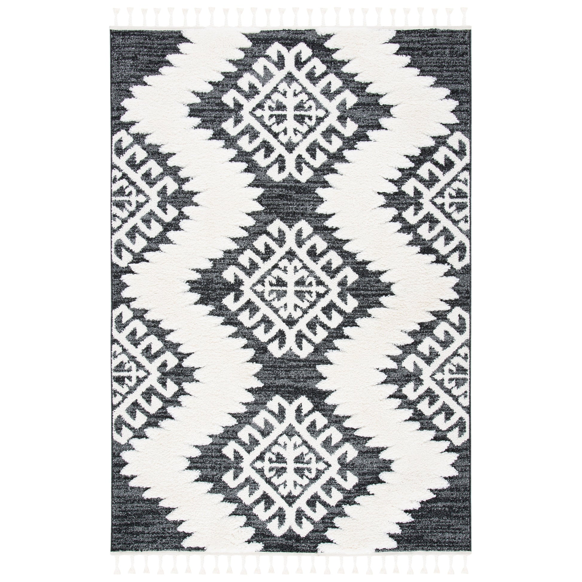 Le tapis SAFAVIEH Moroccan Tassel Shag Iulieana Boho Tribal allie confort et style à la perfection. Son motif marocain classique en losanges et ses motifs abstraits aux couleurs neutres apportent une touche contemporaine à votre intérieur. Grâce à ses fibres synthétiques qui ne peluchent pratiquement pas, vous profiterez d'un confort optimal et d'une douceur moelleuse sous vos pieds, avec une épaisseur de 5 cm. Facile d'entretien et résistant, ce tapis est idéal pour toutes les pièces de la maison.