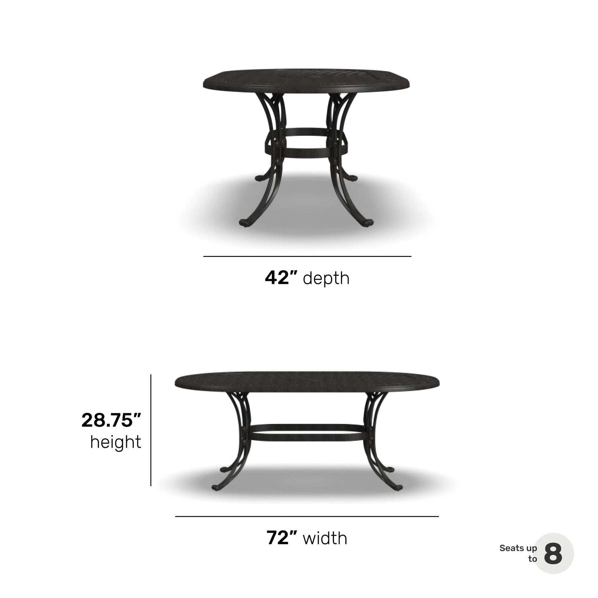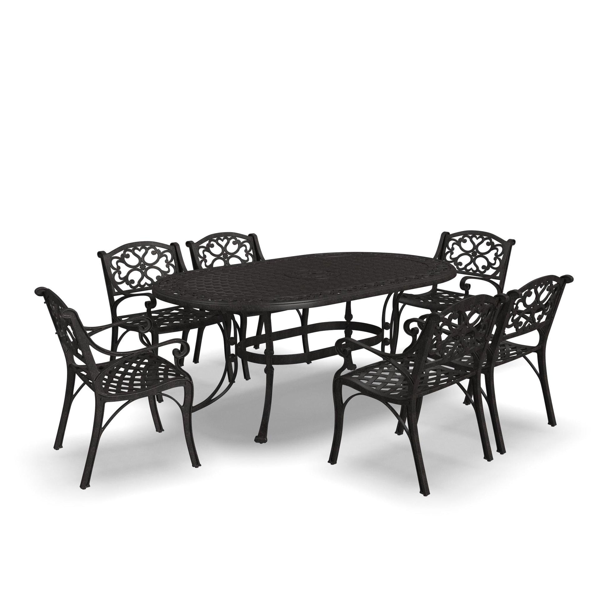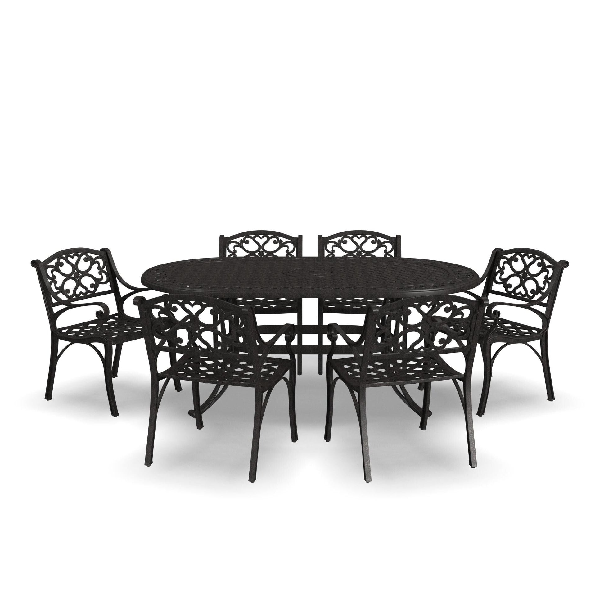 Ensemble de salle à manger d'extérieur en aluminium bronze Sanibel 7 pièces avec table à manger ovale de 72 pouces et six fauteuils par Homestyles