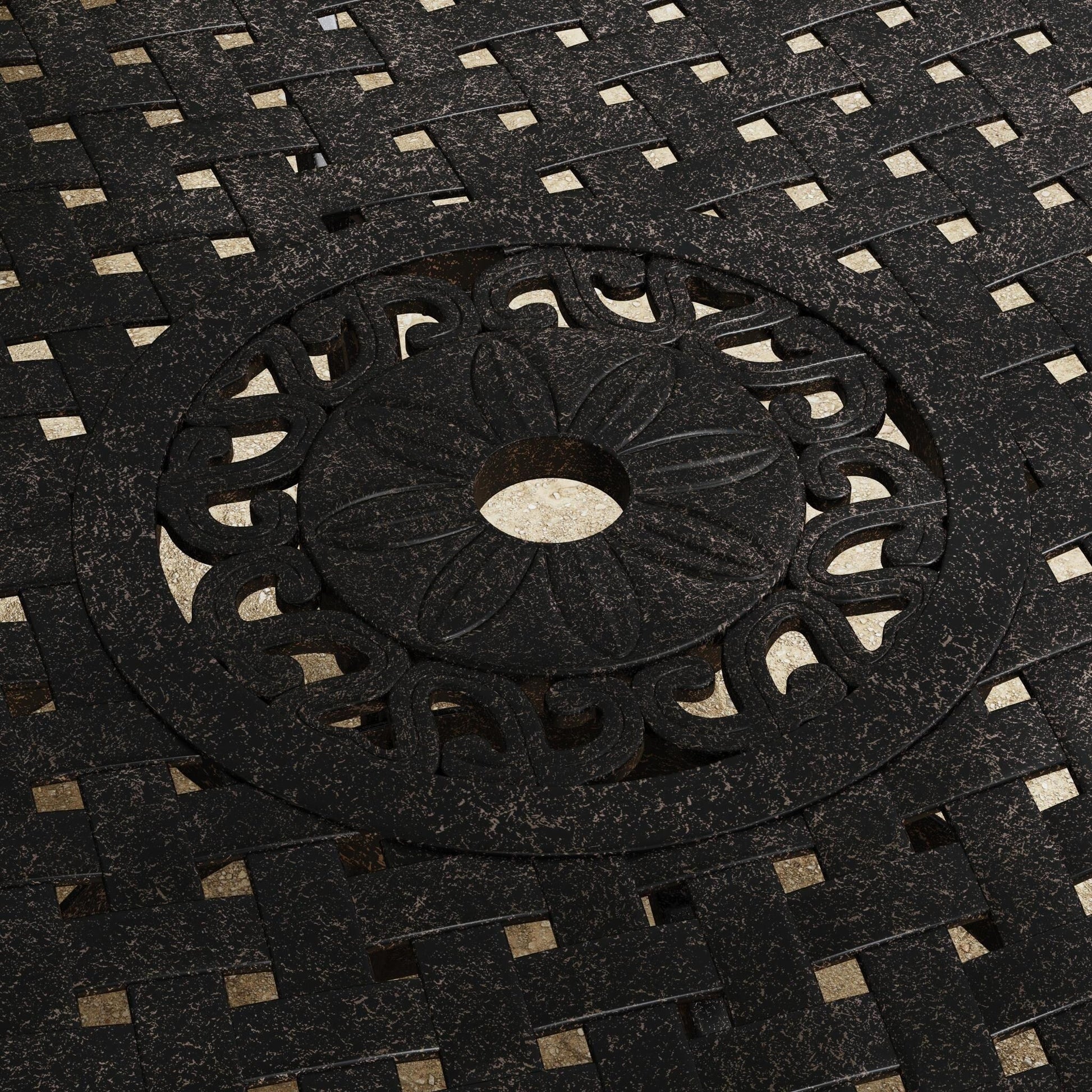 - Le cadre en aluminium moulé sous pression, revêtu d'une peinture en poudre bronze et d'un vernis transparent résistant, est conçu pour résister aux intempéries.