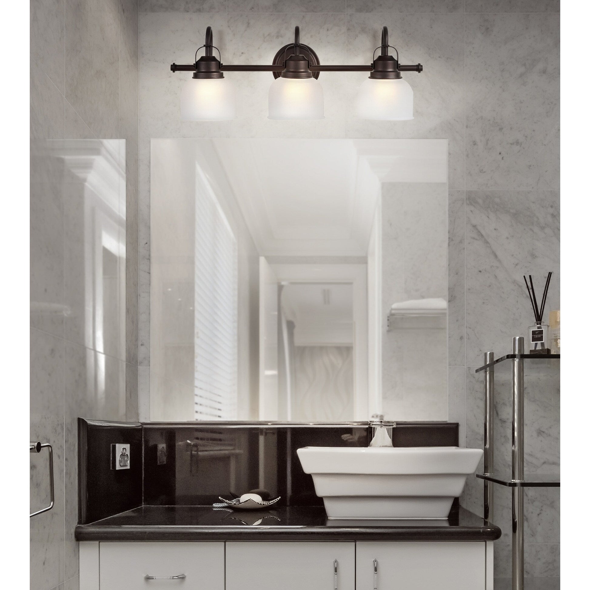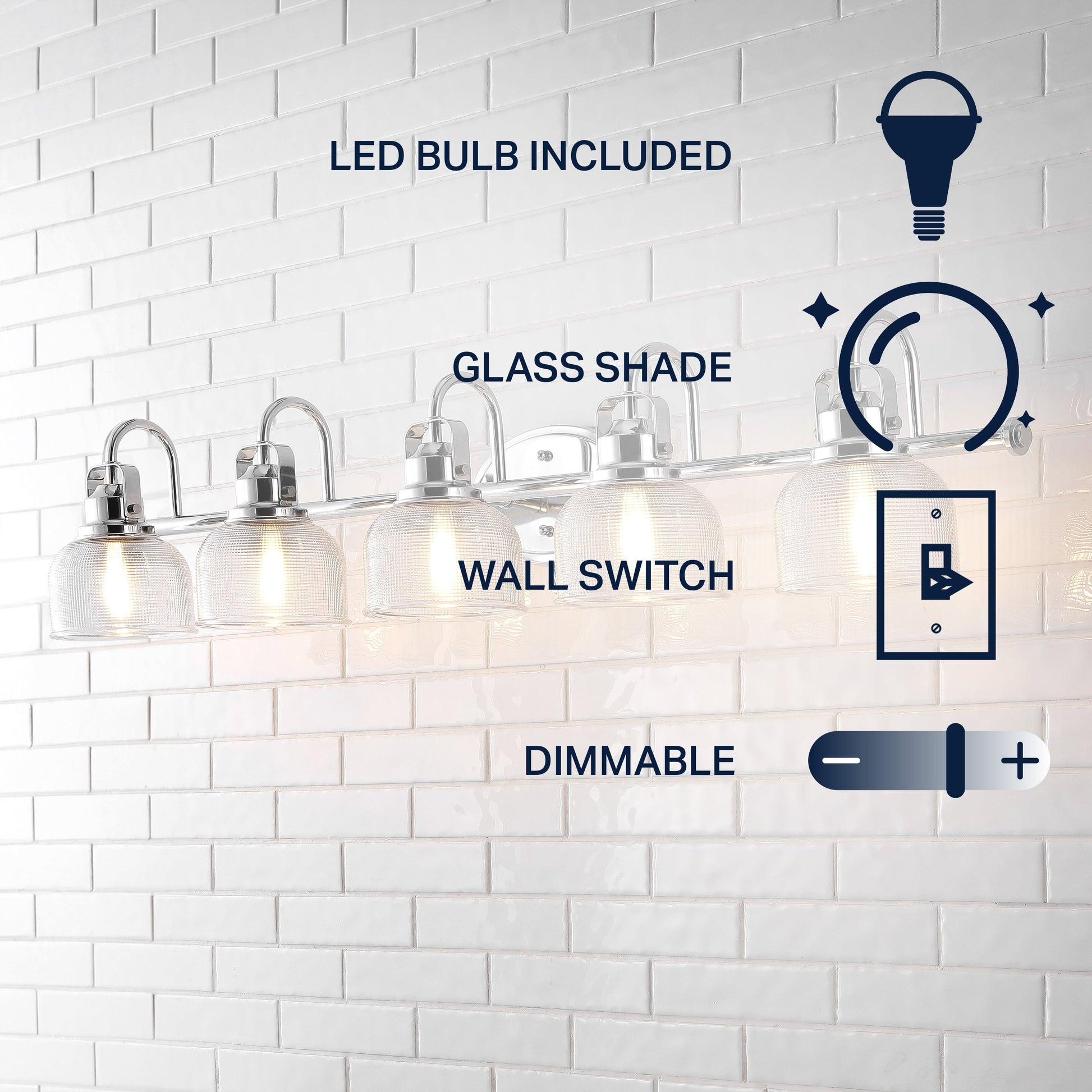 - Le verre texturé et le chrome poli s'associent pour créer une combinaison chic et classique pour cette applique.