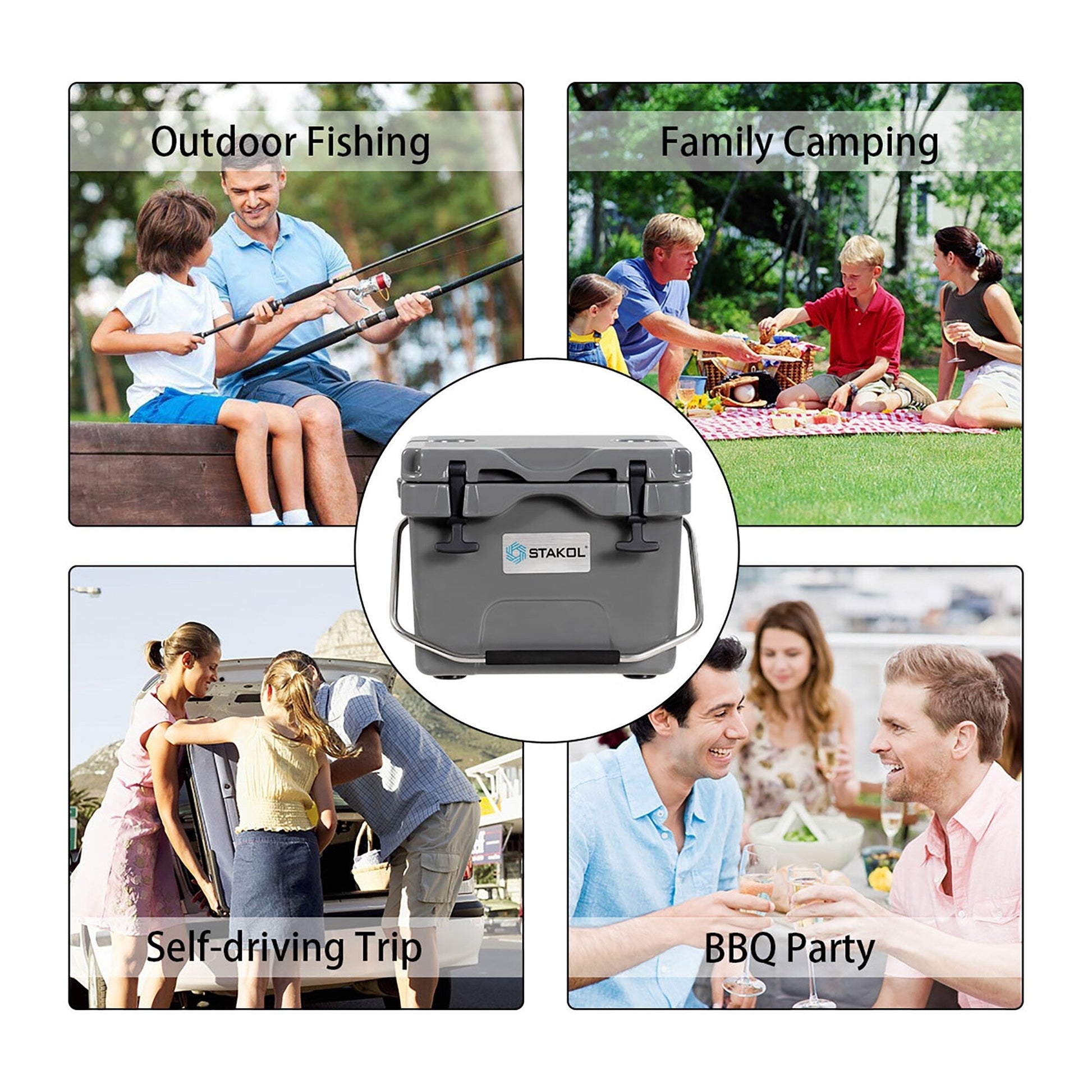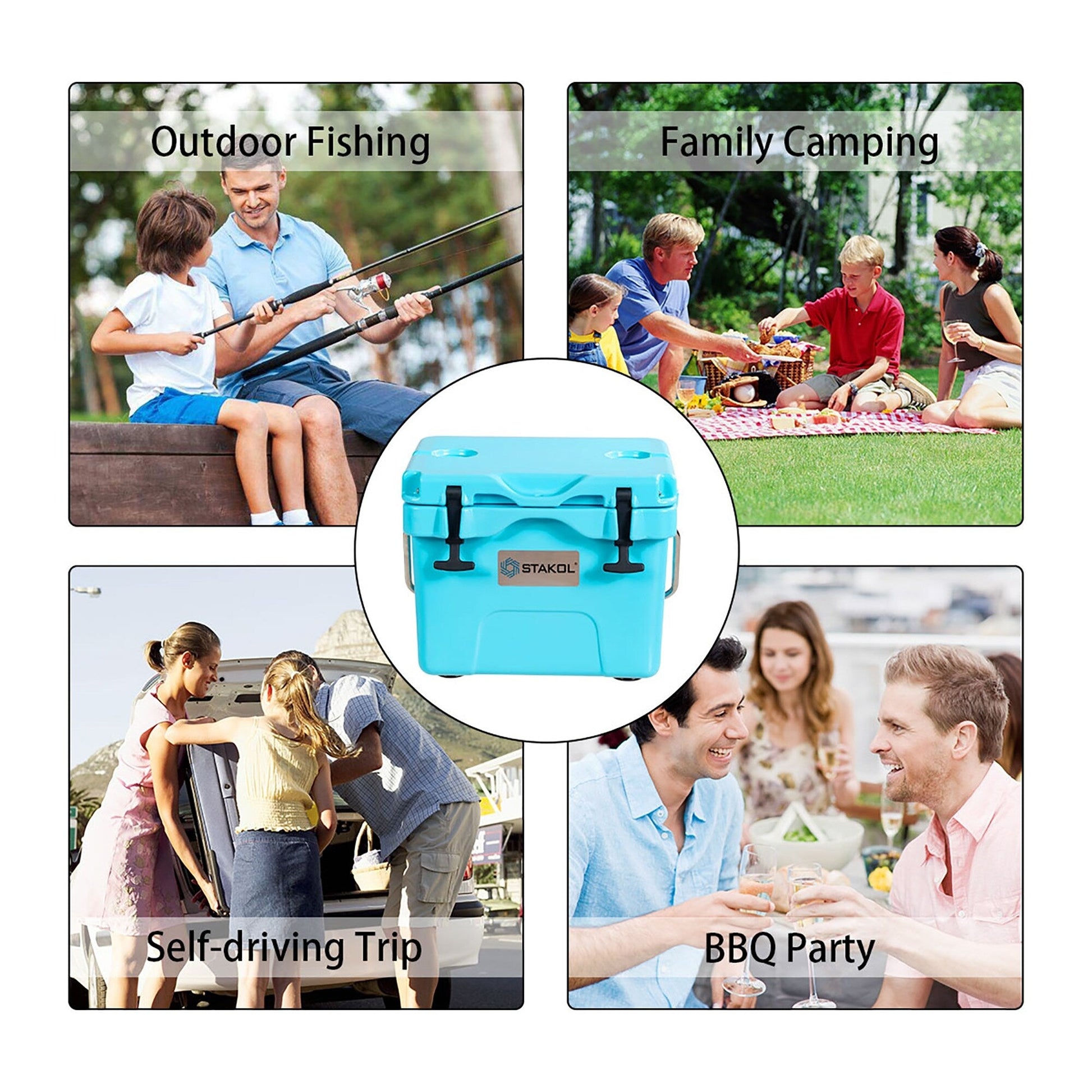 Cette glacière aux performances optimales et à la construction rotomoulée indestructible est sans aucun doute le partenaire idéal pour vos activités de plein air. Fabriquée en PE et PU isolants de qualité supérieure, cette glacière de 16 litres est non toxique et conserve vos aliments, boissons et fruits au frais pendant 3 à 5 jours. Portable, elle s'adapte à de nombreuses situations, comme les barbecues, les pique-niques, la pêche, le camping ou les voyages en voiture. Elle permet également de maintenir les aliments au chaud. Elle est équipée de deux porte-gobelets, de loquets de sécurité, d'un couvercle verrouillable, d'une poignée en acier inoxydable, d'un bouchon de vidange et de repose-pieds. Tous ces détails bien pensés en font une glacière idéale.