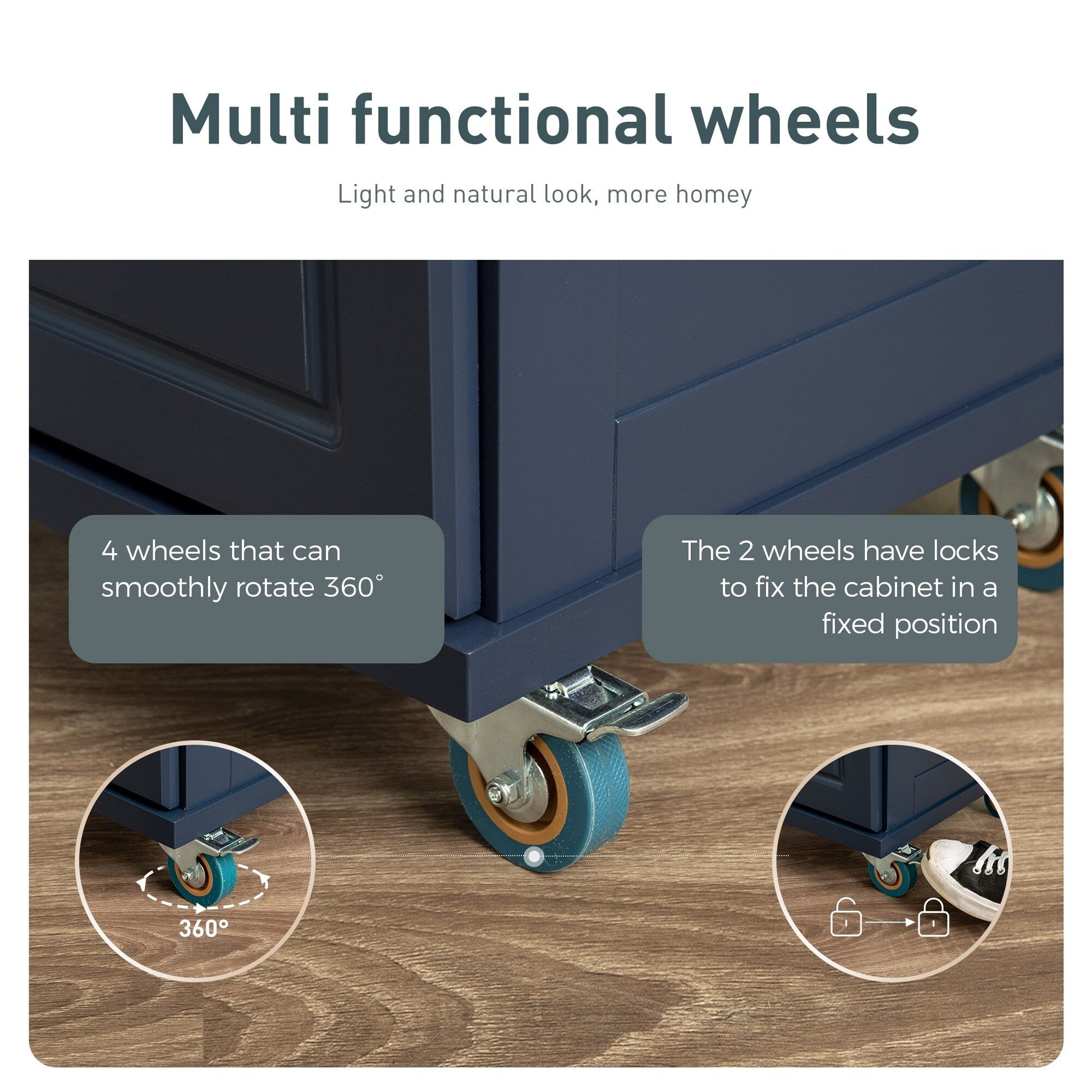 Ajoutez style et fonctionnalité à votre cuisine avec le chariot îlot de cuisine sur roulettes MAISON ARTS. Polyvalent et adapté aux intérieurs traditionnels comme rustiques, ce chariot offre de nombreux rangements, dont une grande armoire, trois tiroirs, un porte-bouteilles et un porte-serviettes. Son plan de travail rabattable est idéal pour les petits espaces, et ses quatre roulettes avec freins facilitent son déplacement et son positionnement. Fabriqué en MDF et bois d'hévéa avec une finition peinte haut de gamme, ce chariot est disponible en blanc, noir, gris ou bleu foncé.