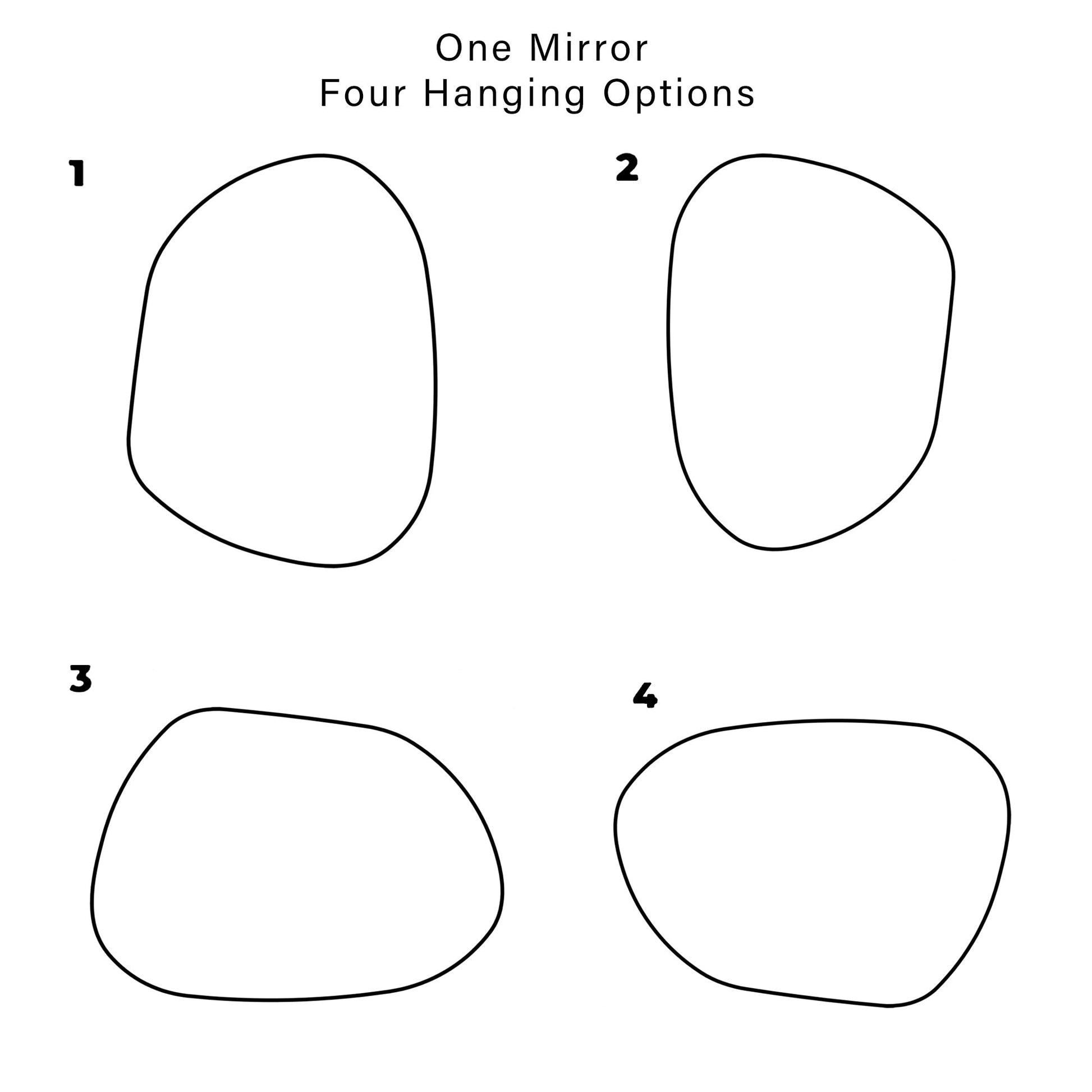 - Plusieurs options de suspension : Astucieusement conçu avec 4 options de suspension, ce miroir, grâce à sa forme irrégulière, vous permet de créer un style unique et d’affirmer votre personnalité selon vos envies.