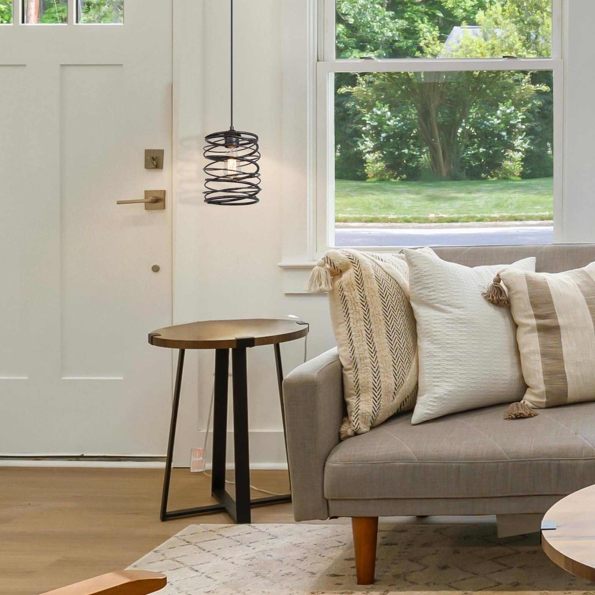 Sublimez votre intérieur rustique avec cette élégante suspension. Son abat-jour cylindrique en métal arbore un motif en spirale superposée, typique des maisons de campagne, et abrite une douille. Disponible en noir élégant ou en finition rustique, cette suspension est fournie avec une chaînette ajustable pour une hauteur personnalisée. Compatible avec un variateur et certifiée UL pour une utilisation intérieure, elle est facile à installer et s'adapte aux plafonds inclinés, plats ou voûtés.