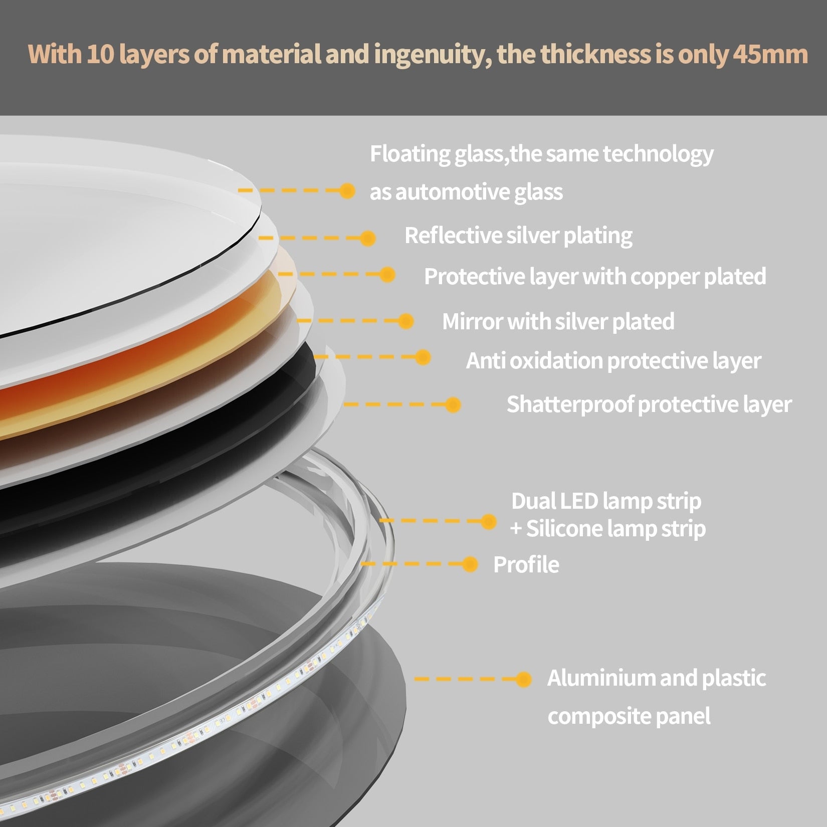 - Fonction mémoire, allumez l'interrupteur, le miroir restaurera le dernier état utilisé