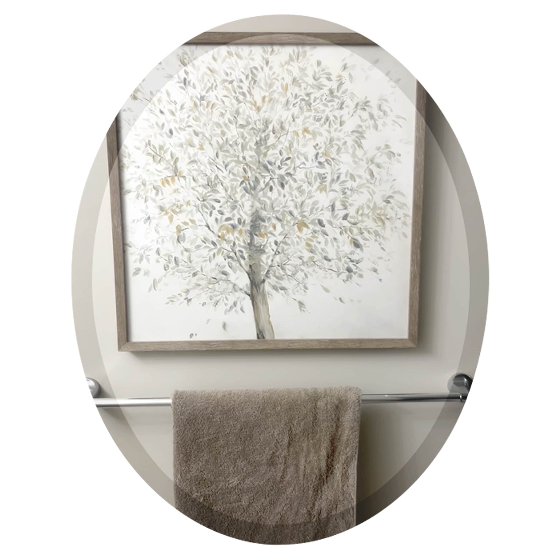 - (Qualité galerie/Sans distorsion) - Ce miroir ovale de qualité galerie, aux bords biseautés polis de 2,5 cm, est conçu, assemblé et emballé en Amérique du Nord. Chaque miroir OVALCREST est fabriqué en verre de 6 mm d'épaisseur et est totalement exempt de distorsion. Son dos argenté de haute qualité assure une excellente réflexion et une grande durabilité, même en milieu humide.