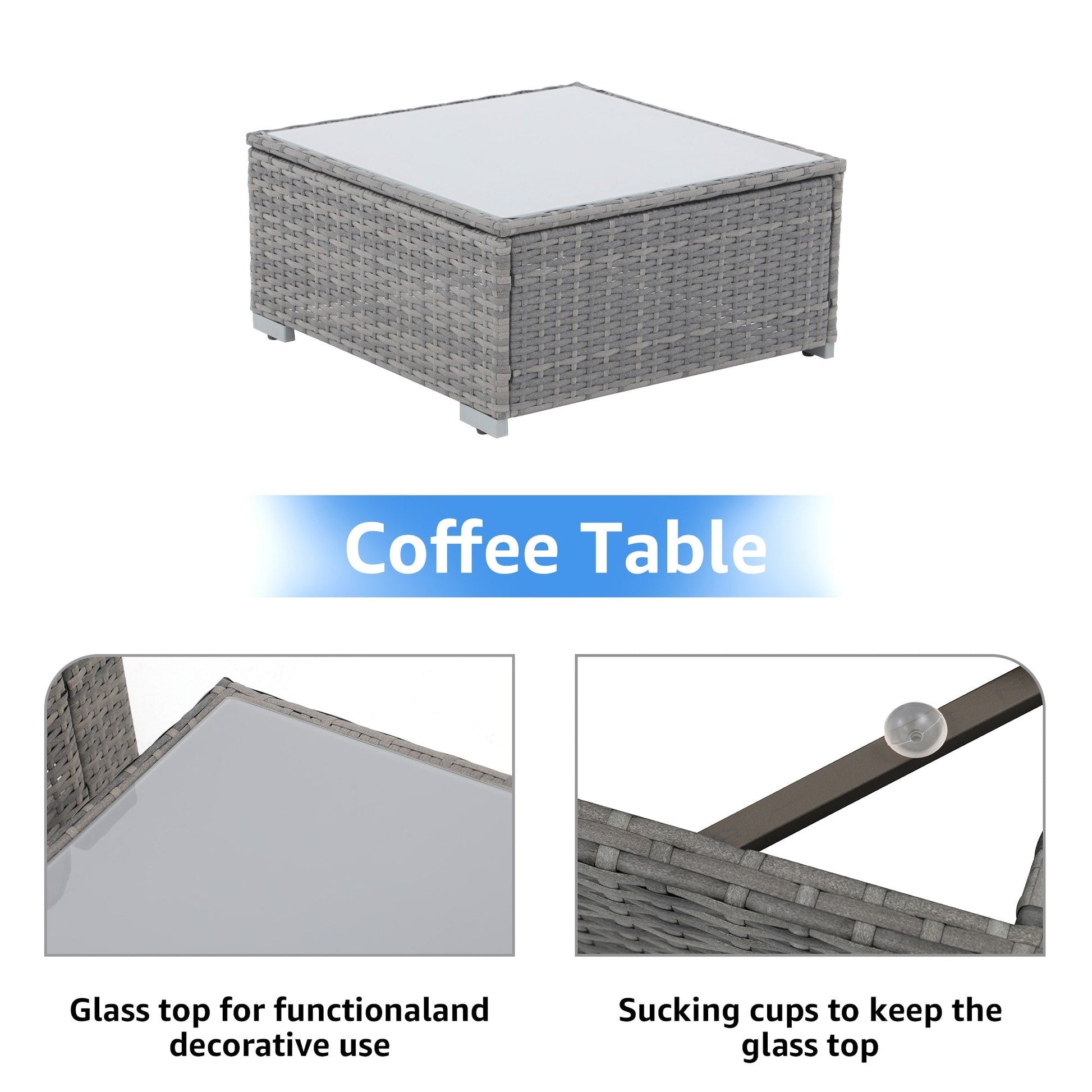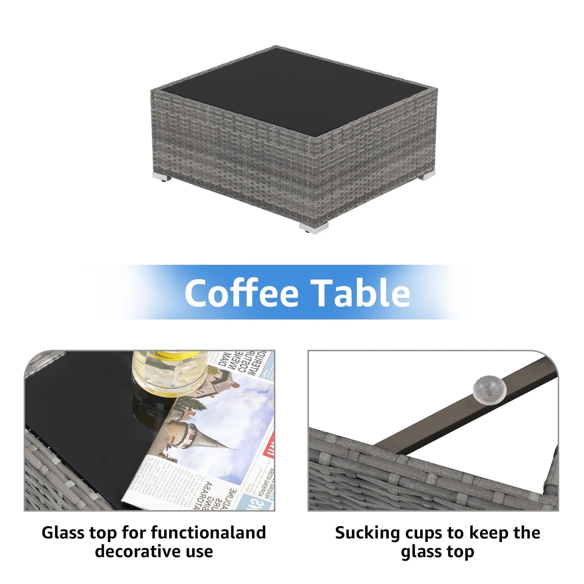 Ajoutez élégance et confort à votre espace extérieur avec l'ensemble de canapés d'extérieur 7 pièces en osier et acier. L'ensemble est doté d'une structure en acier robuste, enveloppée d'osier durable, résistant à la rouille et aux intempéries. Chaque siège est doté de coussins pour un confort optimal. Grâce à son assemblage facile et à ses multiples configurations, vous pouvez personnaliser l'ensemble selon vos besoins. Une table d'appoint est également incluse pour plus de fonctionnalité et de décoration.