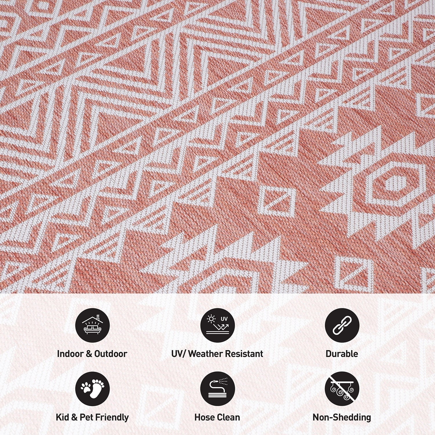 - Tapis d'intérieur/extérieur conçu pour résister à l'usure quotidienne, ce tapis est idéal pour les enfants et les animaux domestiques et parfait pour les zones de passage fréquent de votre maison telles que le jardin, la terrasse, le patio, la véranda, le salon, la salle à manger, la chambre, l'entrée, la chambre d'enfant, la salle de jeux, la chambre d'étudiant, le bureau ou le télétravail. Construction tissée à plat résistante aux intempéries. Un sous-tapis est recommandé pour une utilisation en intérieur uniquement.