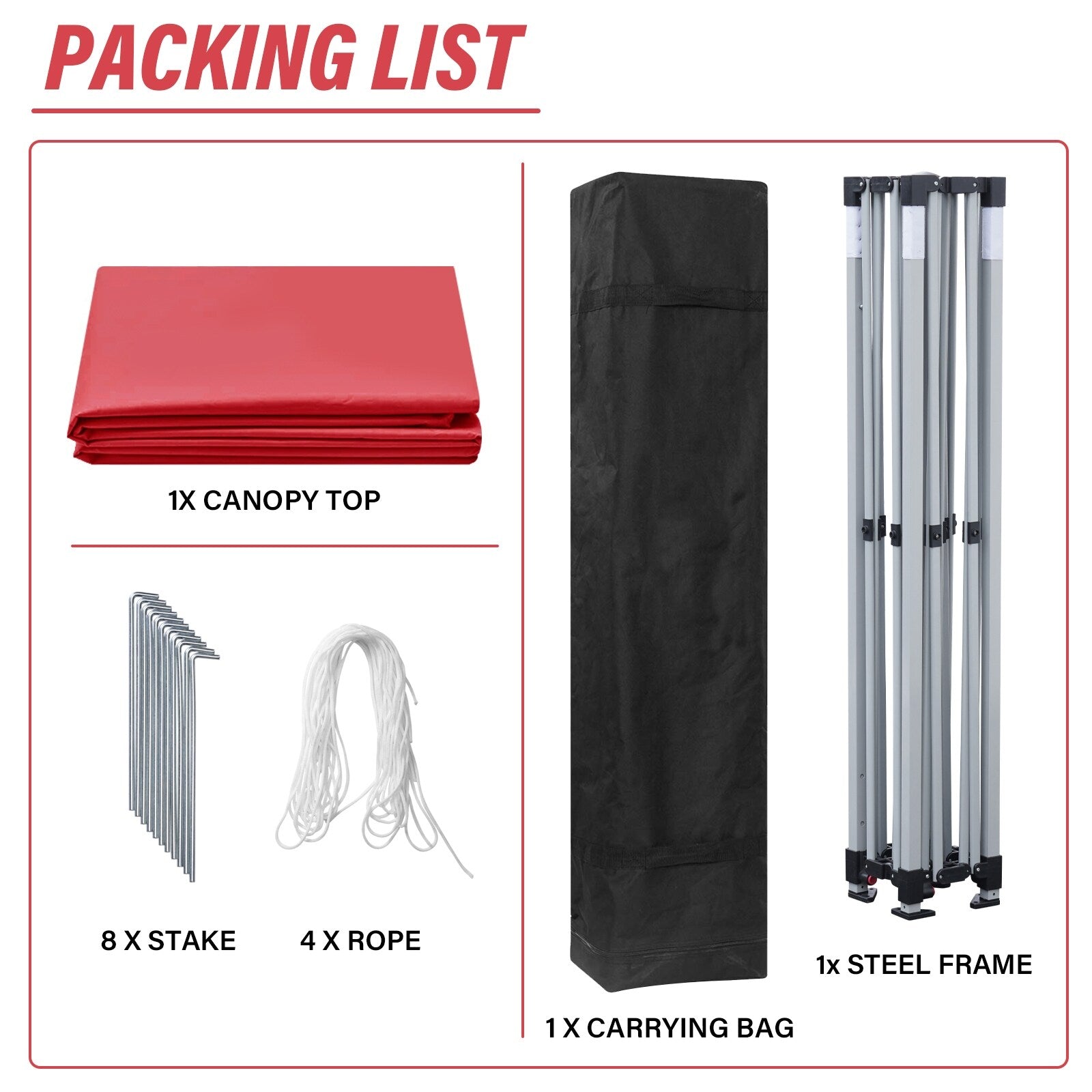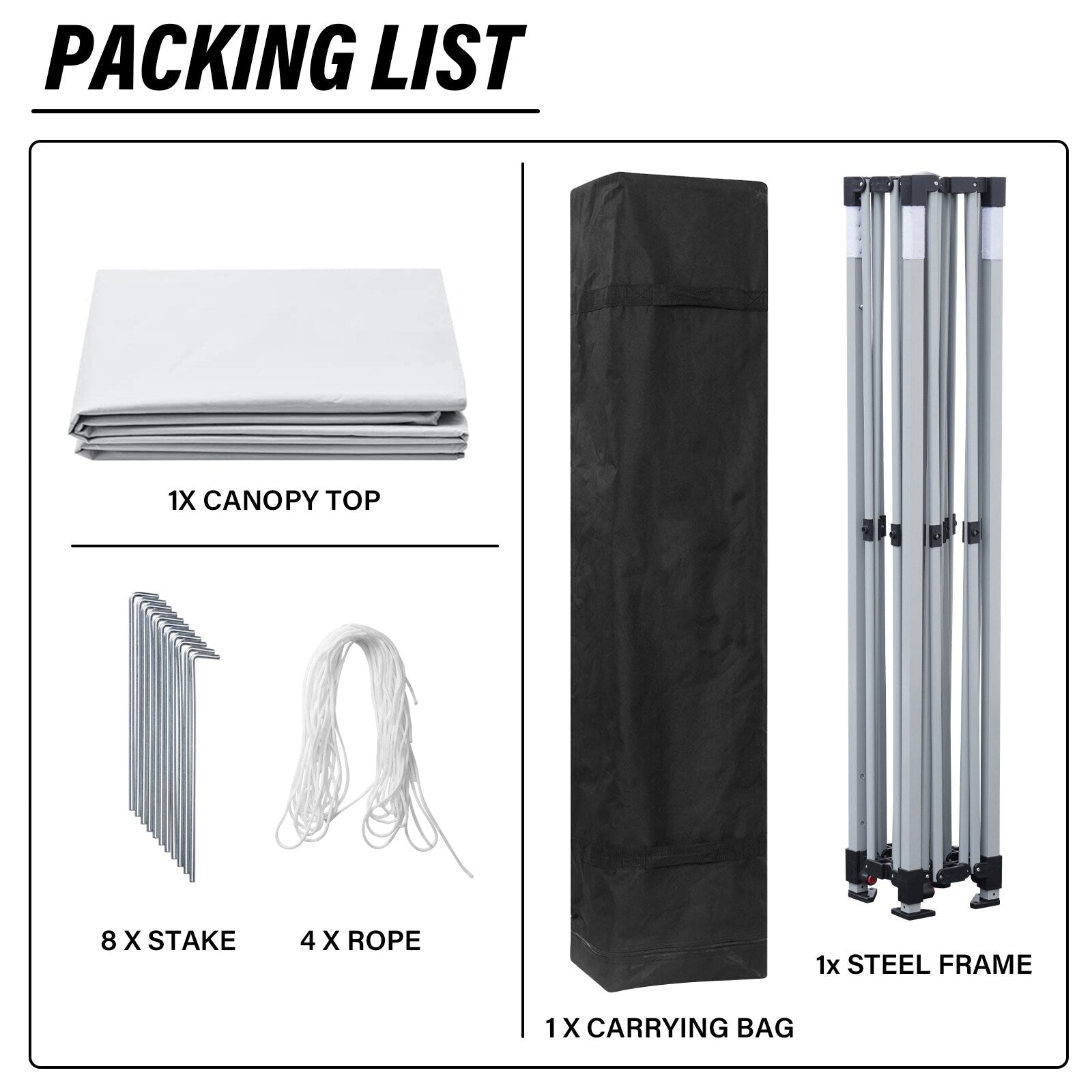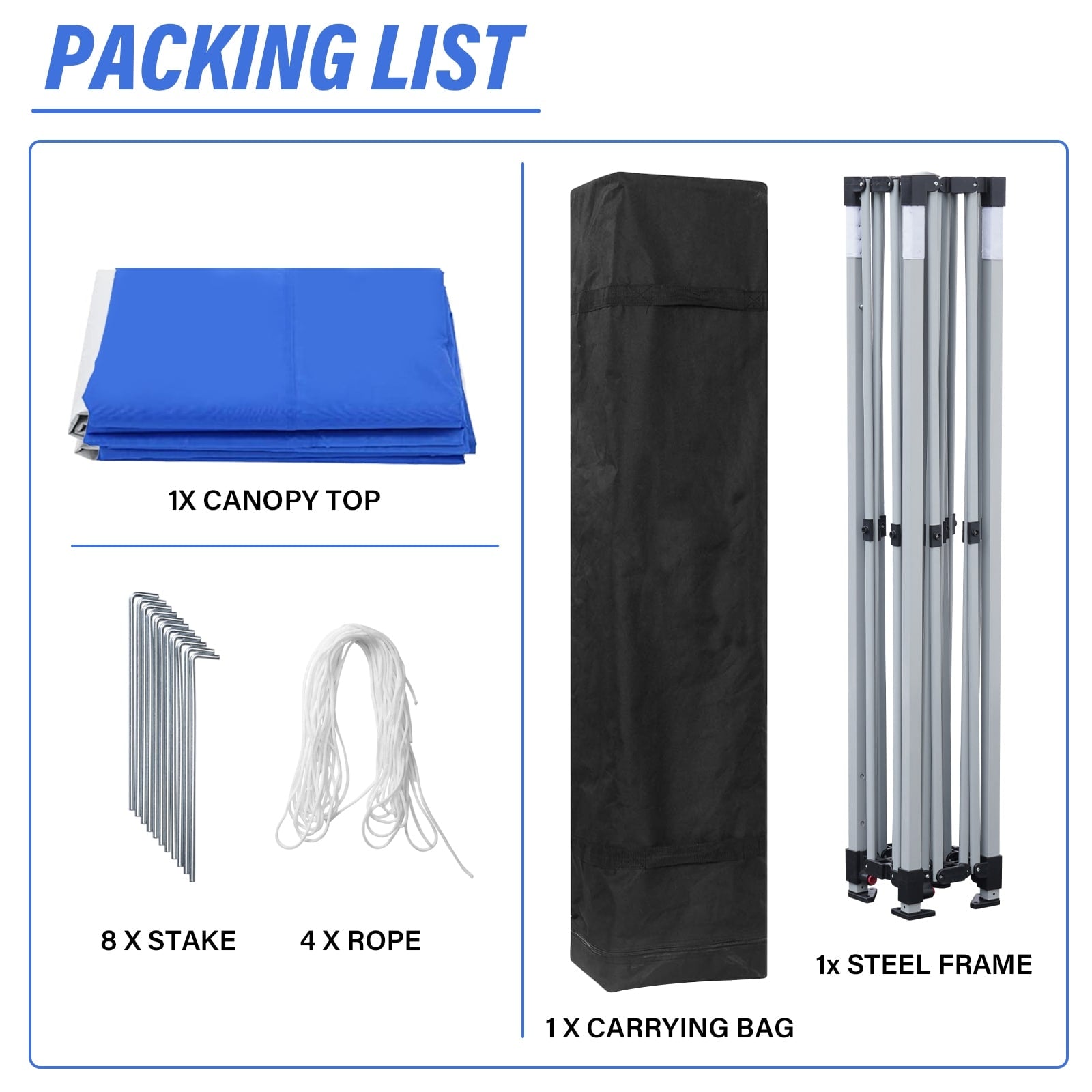 Idéale pour les événements en plein air, cette tente pliante de 3 m x 3 m offre ombre et protection contre les intempéries. Sa structure en acier haute résistance, revêtue d'une peinture en poudre blanche, résiste aux ébréchures, à l'écaillement, à la rouille et à la corrosion. Dotée d'une toile Oxford 210D imperméable et robuste bloquant 99 % des rayons UV, cette tente est parfaite pour les marchés artisanaux, les festivals de rue, les pique-niques, les fêtes d'avant-match, les événements sportifs, les mariages et bien plus encore. Portable et facile à installer, cette tente est fournie avec un sac de transport et se déploie en quelques secondes, seul ou à deux.